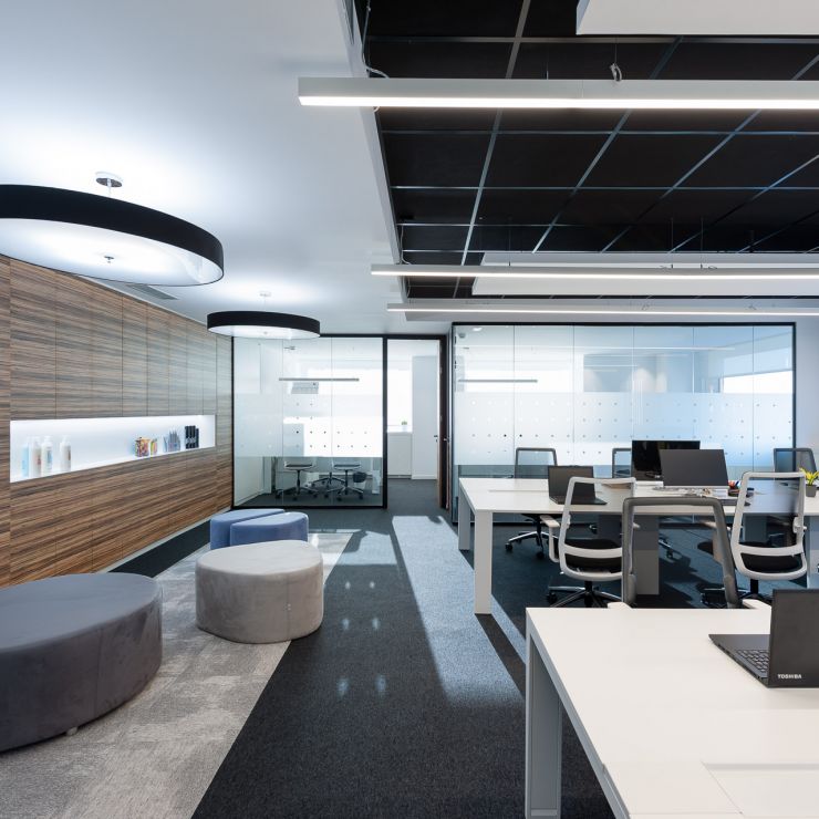 The workspaces combine reflection and confidentiality with collaborative work. These common areas, for meetings, exchanges and conviviality, with open or isolated workstations in cocoons or behind claustras that make the space more intimate, are also flexible and notably equipped with partitions to follow the evolution of the departments' needs. For greater modularity, these spaces also benefit from direct natural lighting and large surfaces in the center of the building.