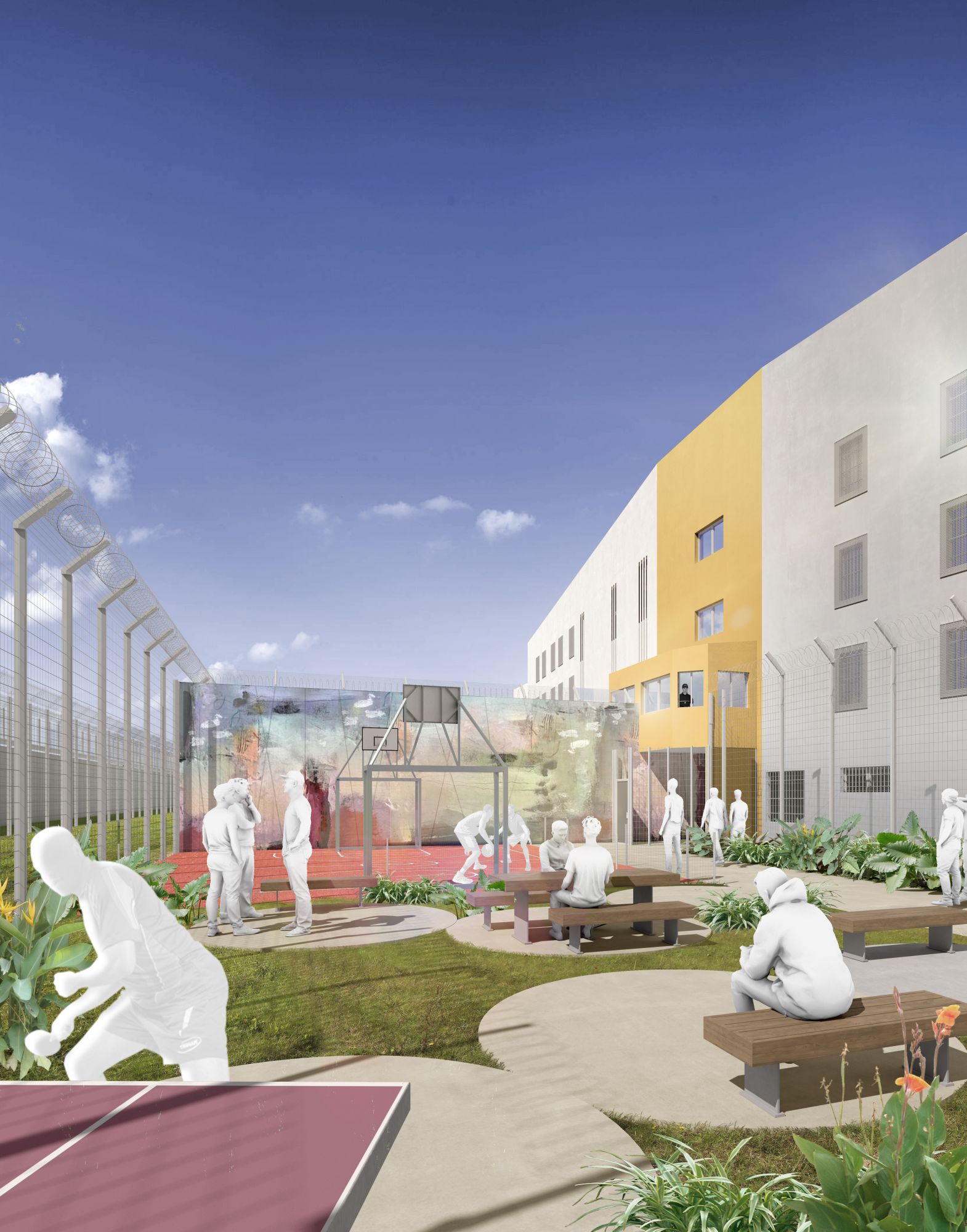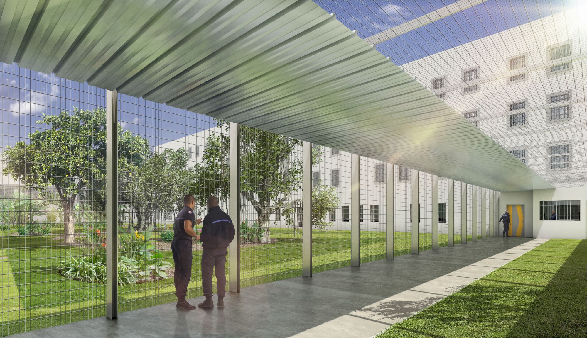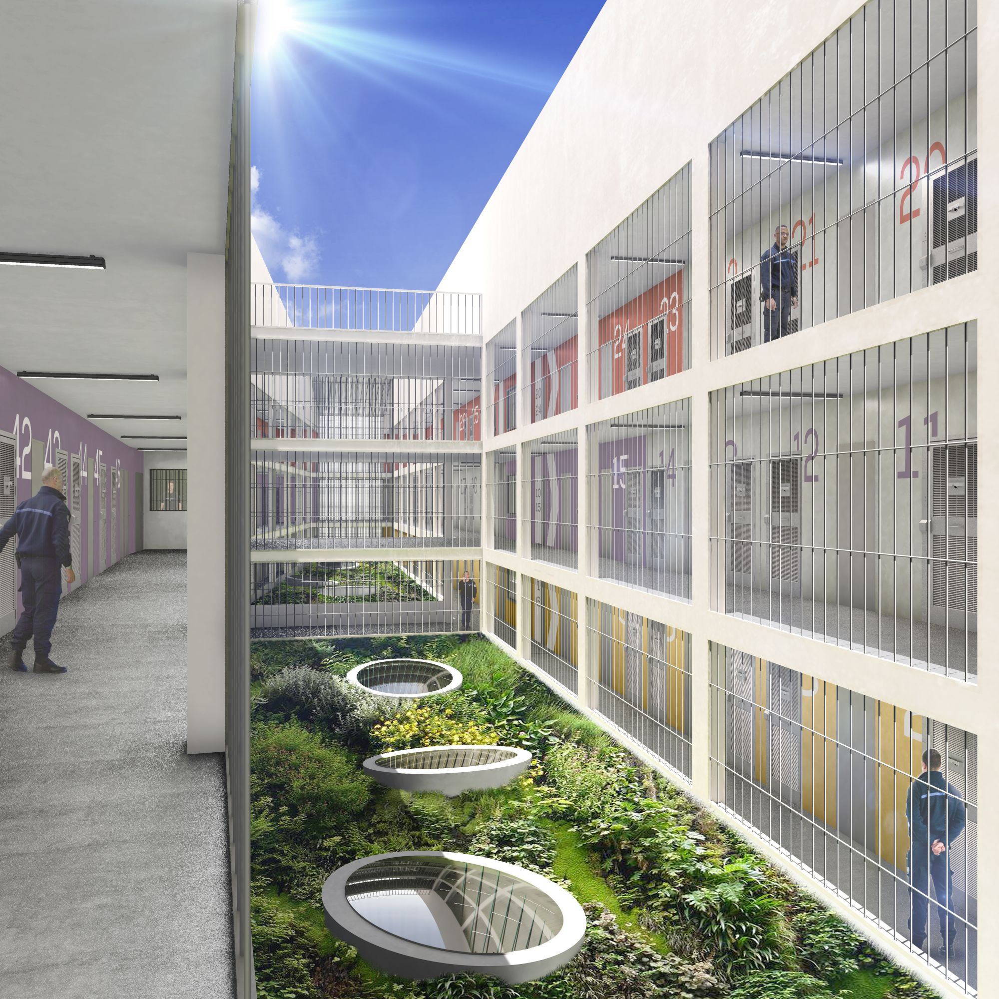 Bâtiment fonctionnel et humaniste permettant à chacun de se retrouver dans un milieu ambiant calme favorable à la réinsertion du détenu et à l’apaisement des acteurs du monde carcéral L’extension reprend les qualités d’ordonnancements du plan actuel tout en maîtrisant les espaces vides pour lesquels nous créons des espaces paysagers participant à la vie carcérale.