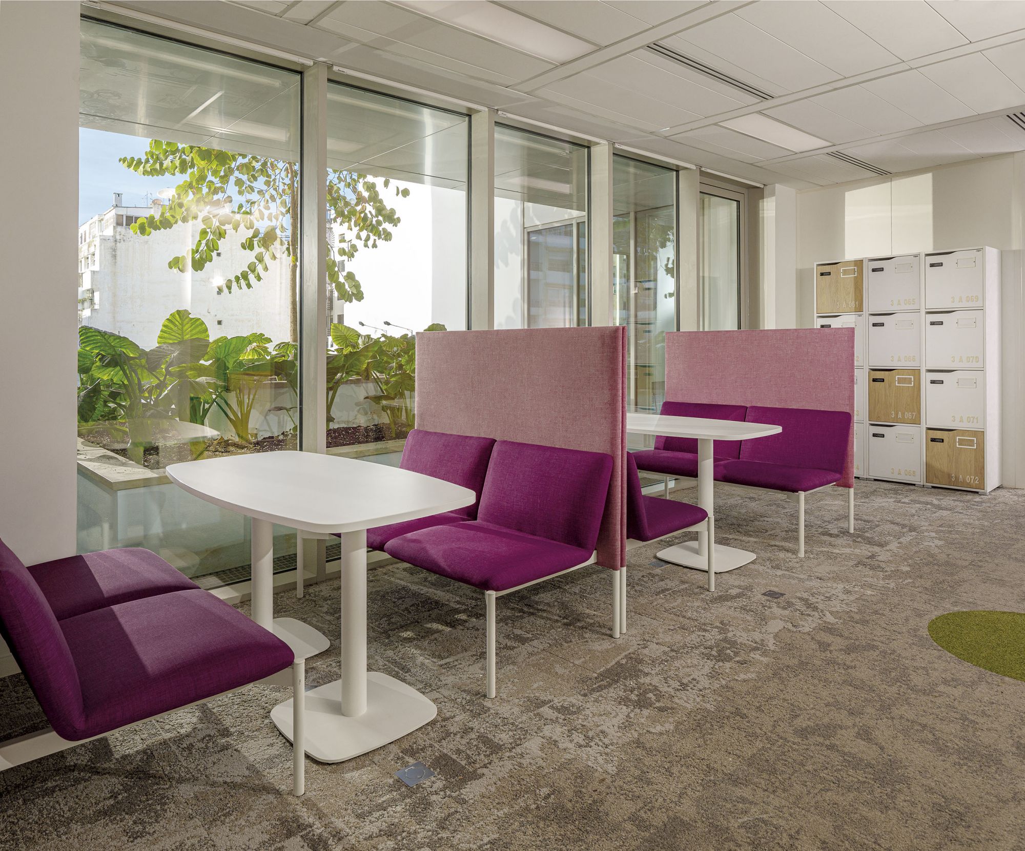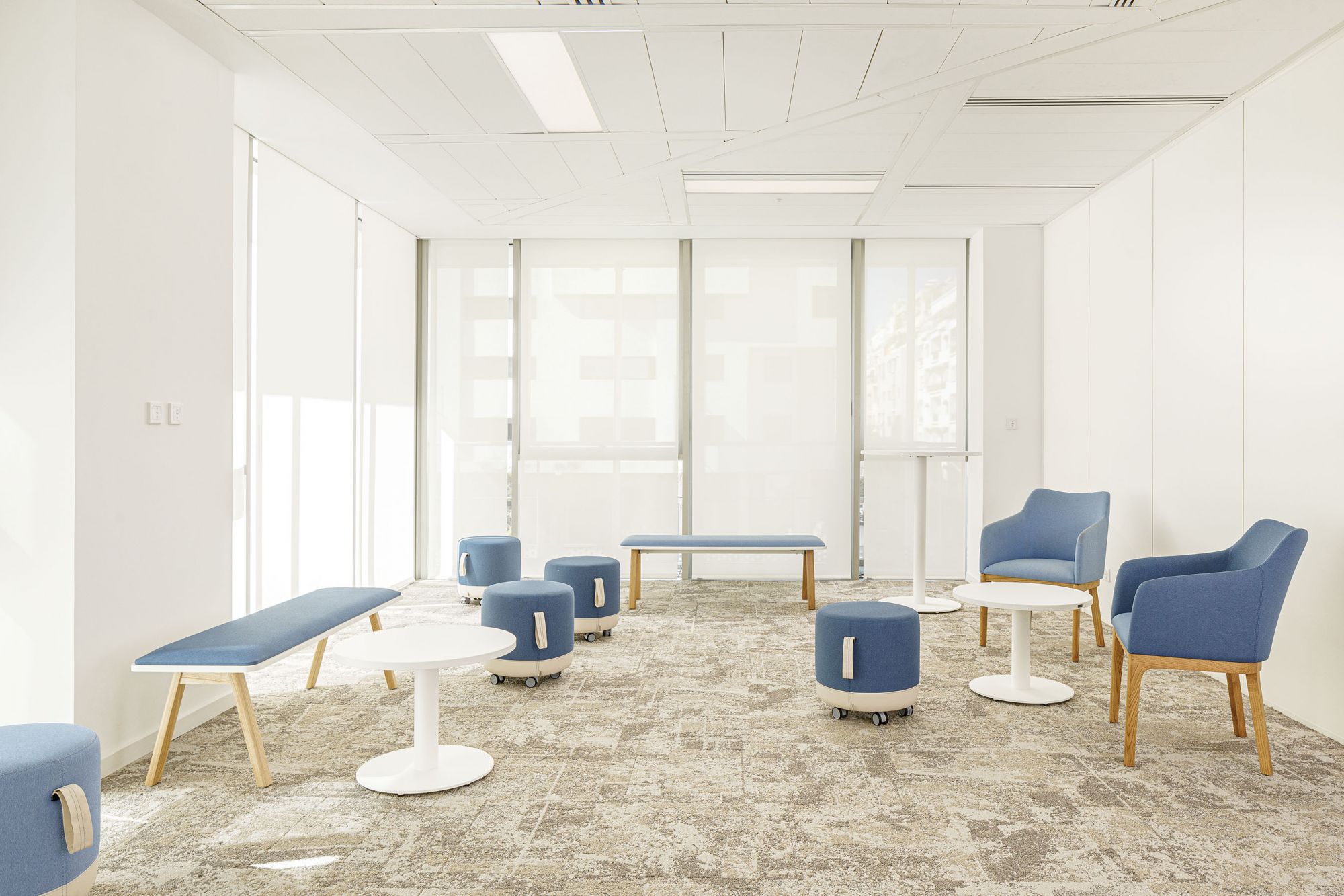 • 244 positions de réunion informelle, réparties en tables hautes, cocons, alcôves ou espaces agiles