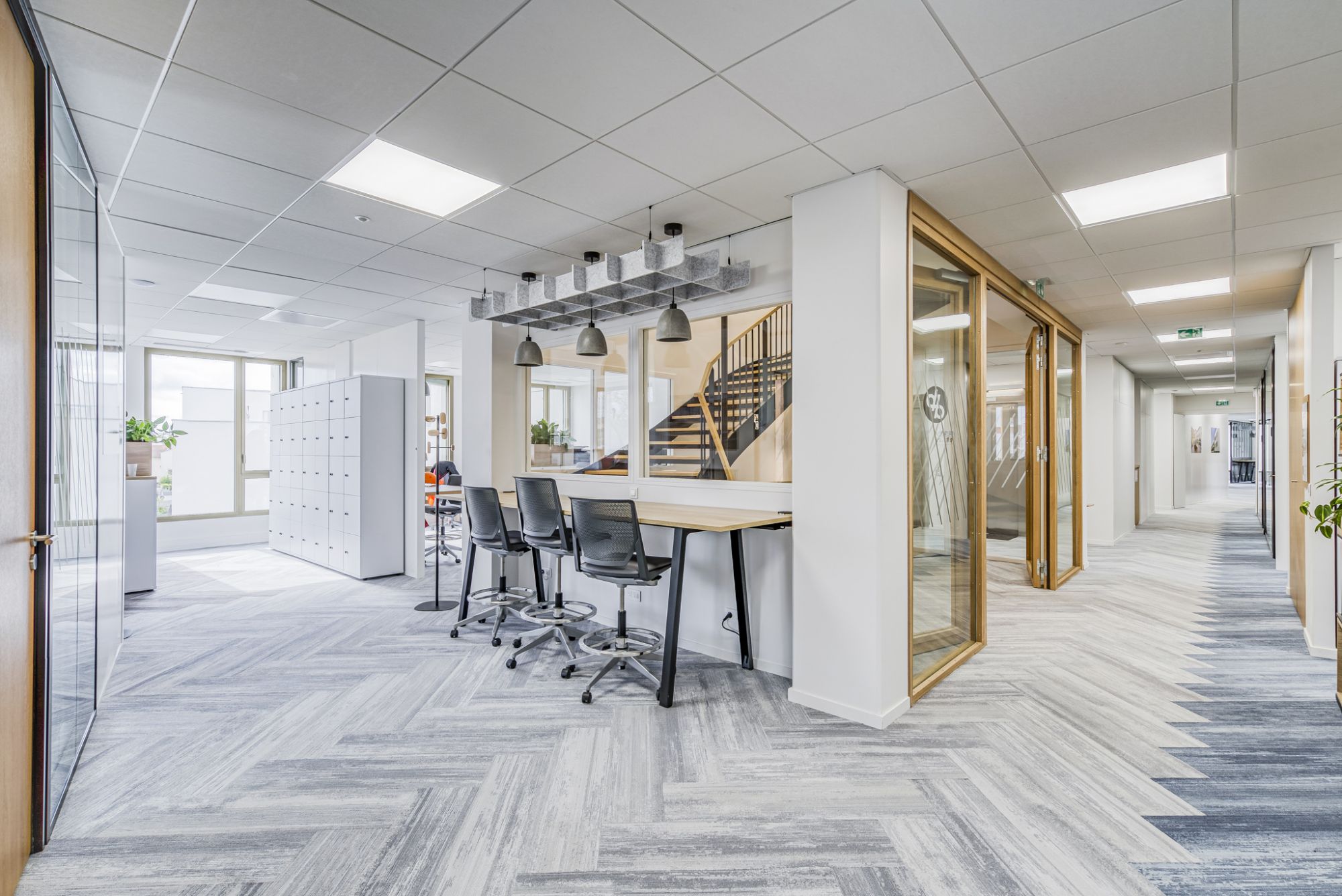 Dans une architecture de béton élégante et contemporaine conçue par le cabinet Z Architecture, ce projet porte sur 5 000 m², dont 2 500 m² pour le siège, aménagé par nos équipes lyonnaises. Une conception au service des nouvelles pratiques collaboratives et de la qualité de vie au travail.