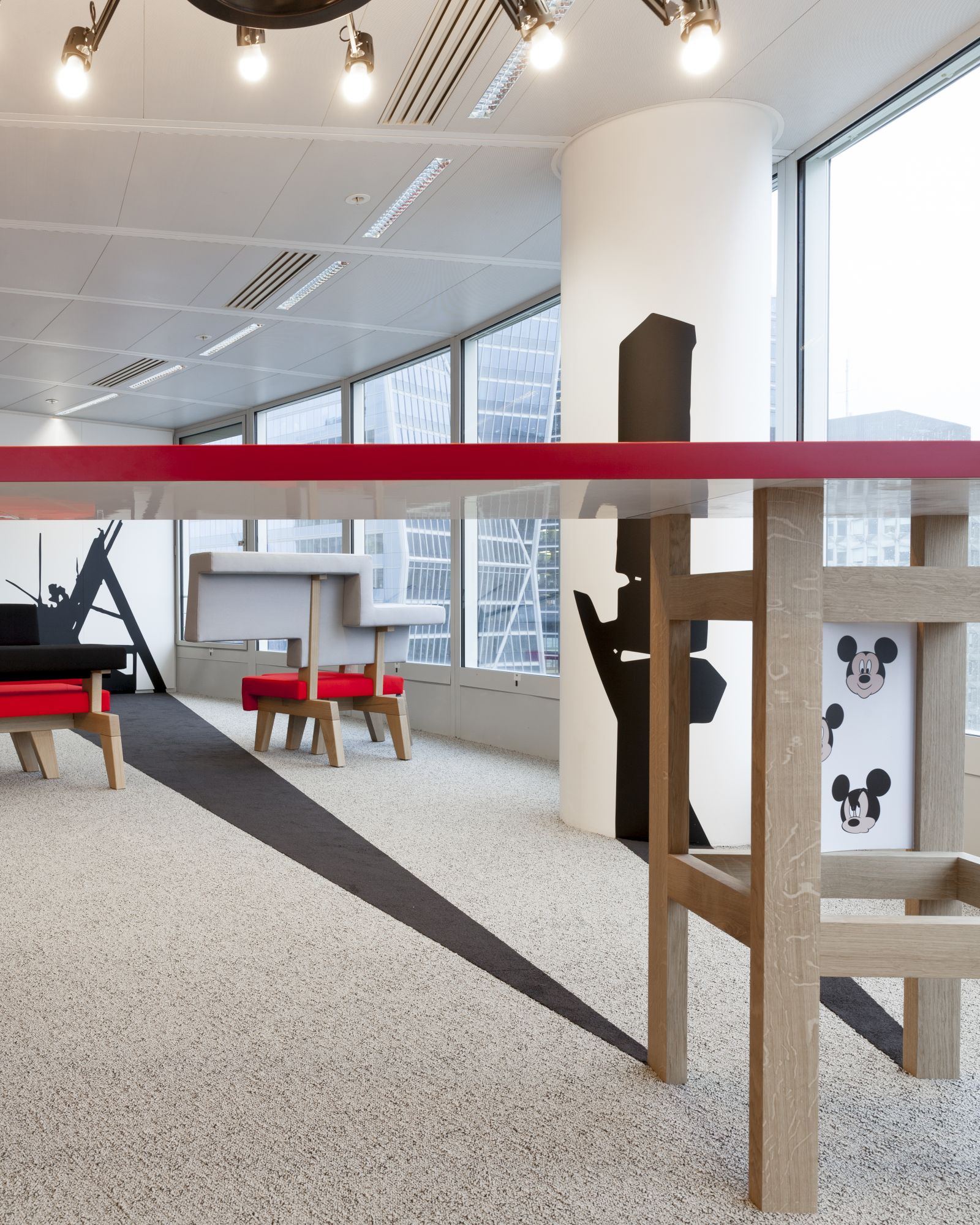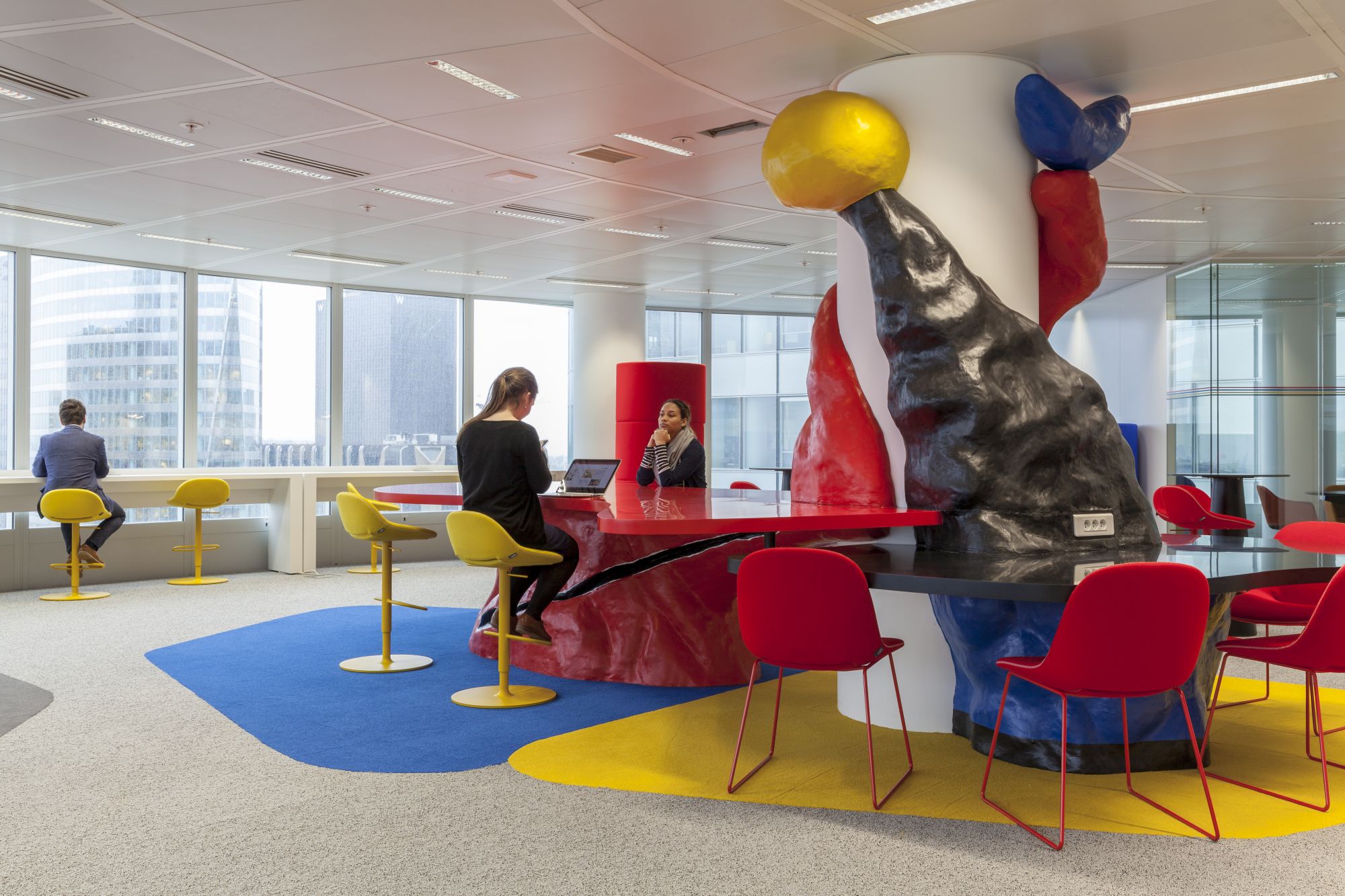 Avec son musée à ciel ouvert, le premier quartier d'affaires européen ne ressemble à aucun autre : des oeuvres architecturales côtoient des oeuvres d'art et créent une identité culturelle forte donc l'établissement est fier. C'est tout naturellement que ce patrimoine culturel et architectural a servi de fil rouge décoratif pour es locaux que le client voulait uniques en leur genre.